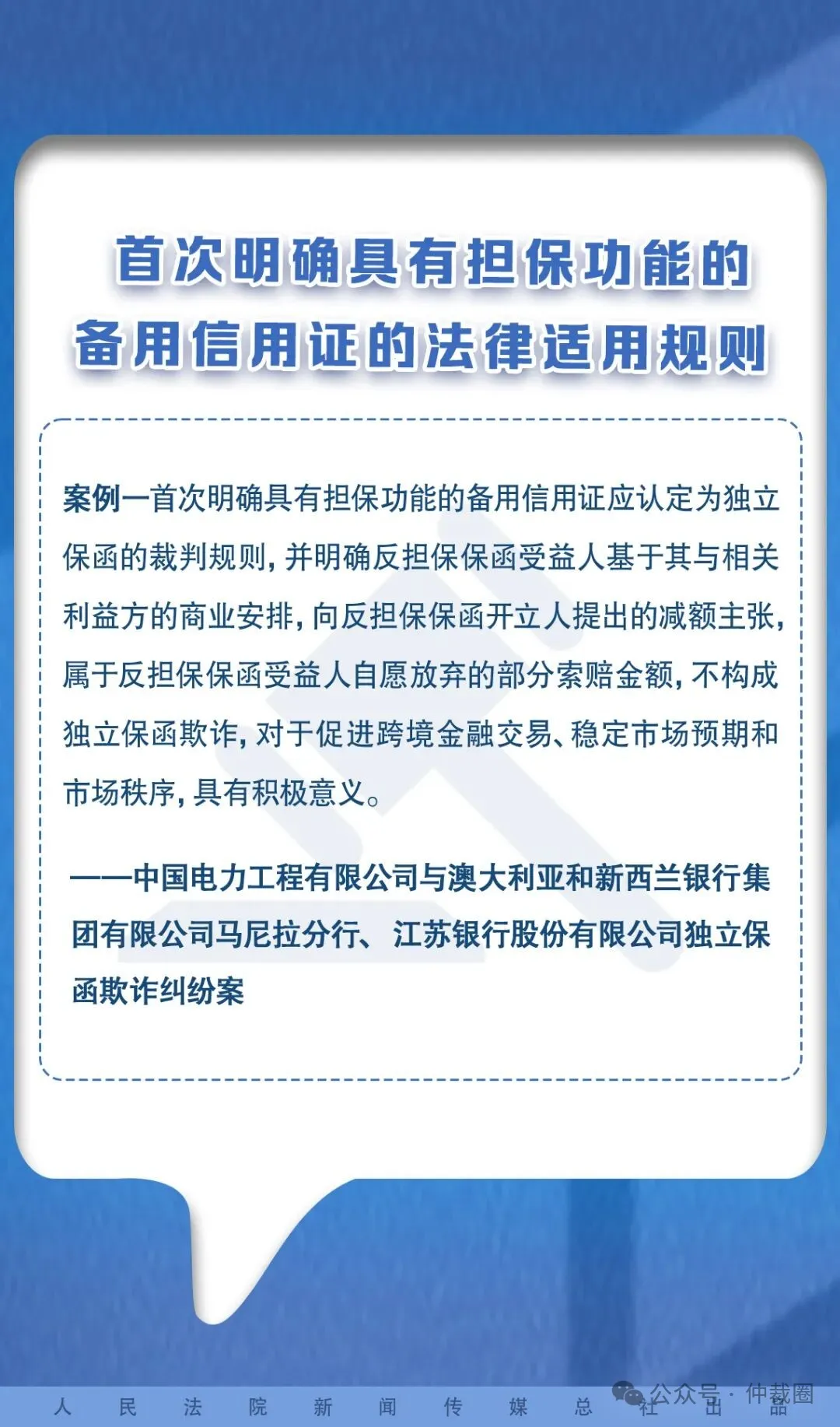 案例涵盖了独立保函、“一带一路”建设工程合同、申请承认和执行外国法院民商事判决、申请承认和执行外国仲裁裁决等案件类型,集中反映了“一带一路”建设中法律问题的多样性,清晰阐述了法律适用的原则和依据,不仅为相关领域法律问题提供了明确指引,更体现了我国加强国际经贸合作、推动国际司法协助的积极态度。下面通过一组海报了解一下!