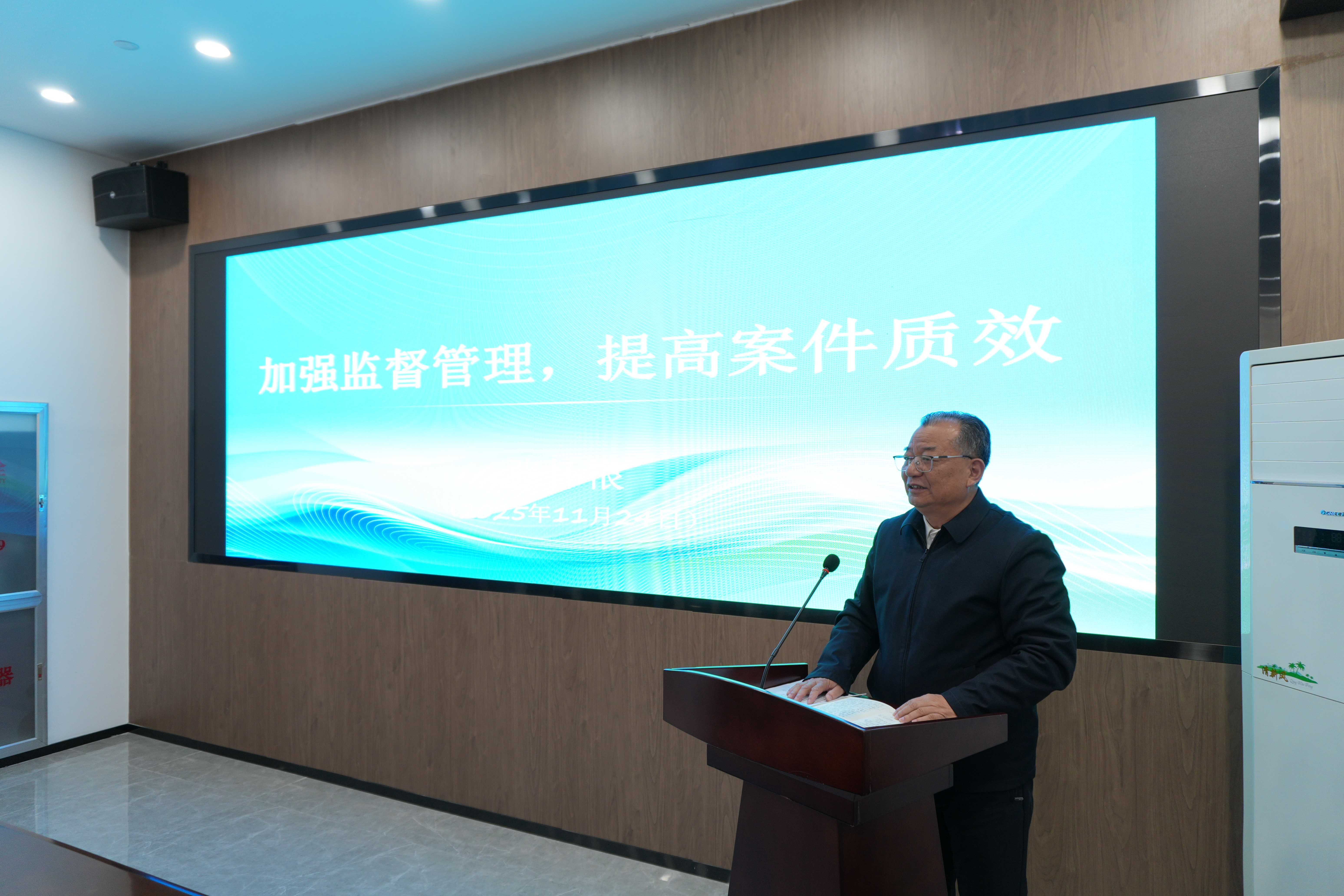 案件管理室主任祖宏杰通报了案件评查情况,针对文书送达、信息披露、庭审驾驭、焦点归纳、法律适用、三级核阅等方面存在的问题,有针对性地提出了提升案件质效的建议。
