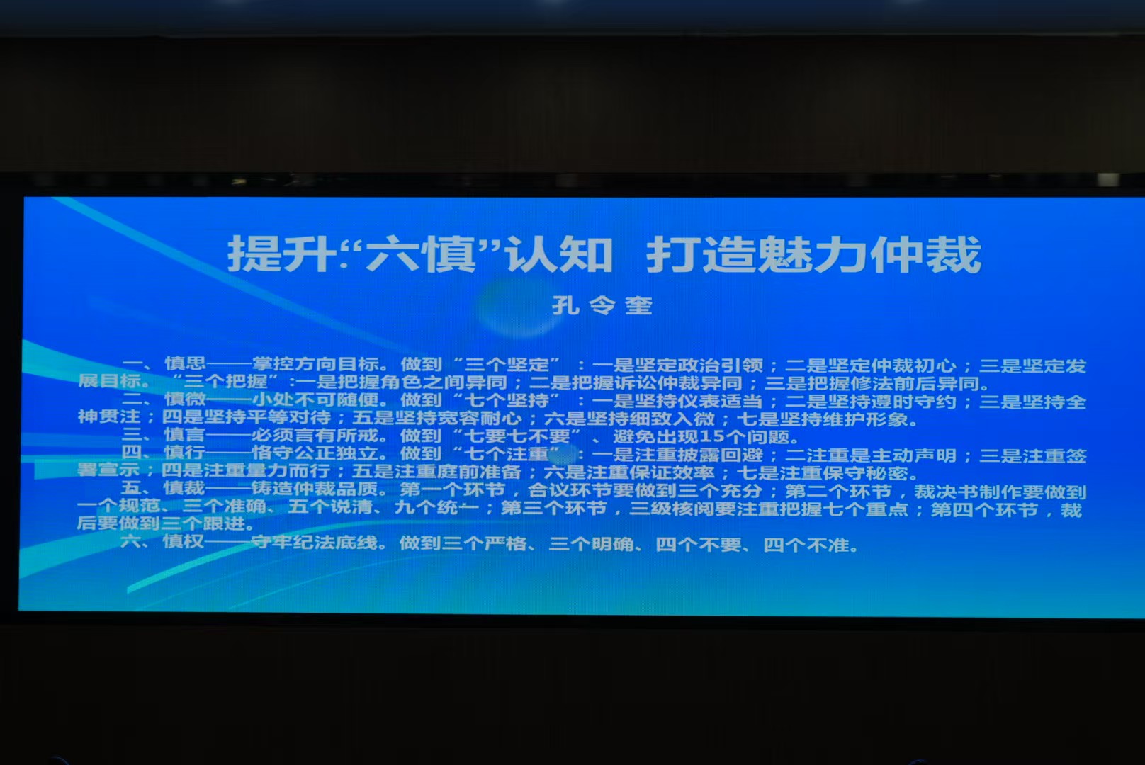 孔令奎在总结讲话中对这次研讨会给予高度评价。他表示,大家的每一份分享都融入了自己的深入思考,每一份分享都闪烁着智慧的光芒,每一份分享都蕴含着对仲裁工作的真挚情感,每一份分享都体现了对推进周口仲裁事业高质量发展的责任感。他强调,做好仲裁工作必须做到“三个坚定”:一是坚定政治引领。以习近平法治思想为指导,深刻领悟“十一个坚持”的丰富内涵,增强服务高质量发展、高效能治理、高水平对外开放的主动自觉。二是坚定仲裁初心。着眼于化解矛盾,立足于实际解决问题,根据事实,符合法律规定,公平合理地解决纠纷,不负选择和指定,既要力戒程序空转,更要避免虚假仲裁。从某种意义上讲,我们办的不单单是案件本身,而是“别人的悲欢离合”和“万家灯火的明灭”。三是坚定发展目标。“眼里有星辰,心中有山海。”务必保证案件质量和服务质量,提升周口仲裁的影响力、公信力,打造品质仲裁、魅力仲裁,才能实现“立足周口、扎根河南、服务全国、走向世界”的目标要求。他就提升仲裁质效提出“六慎”要求。一要慎思,掌控方向目标;二要慎微,小处不可随便;三要慎言,必须言有所戒;四要慎行,恪守公正独立;五要慎裁,铸造仲裁品质;六要慎权,守牢纪法底线。