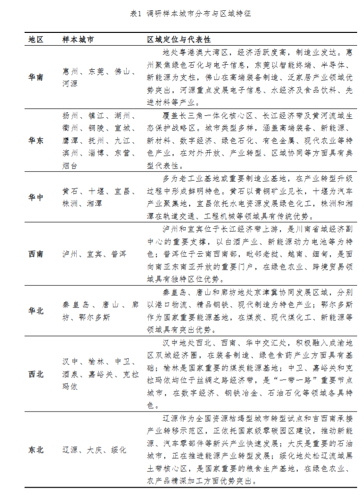 为全面反映全国中等城市仲裁机构的发展面貌,本次调研综合考虑地理区位、经济发展水平、产业特色以及仲裁机构发展状况的差异性,从全国7大地区选择37个中等城市的仲裁机构作为样本,所选城市及其区域定位见表1。通过覆盖不同区域、不同类型的中等城市,确保调研成果具有较强的代表性和研究价值。