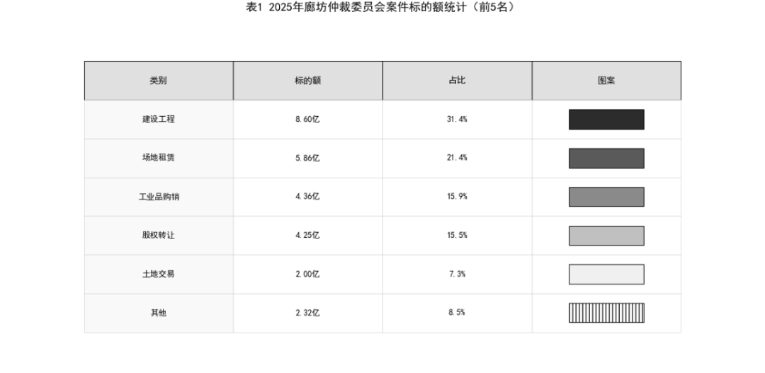 图4 2025年廊坊仲裁委员会各类型案件标的额及其占比