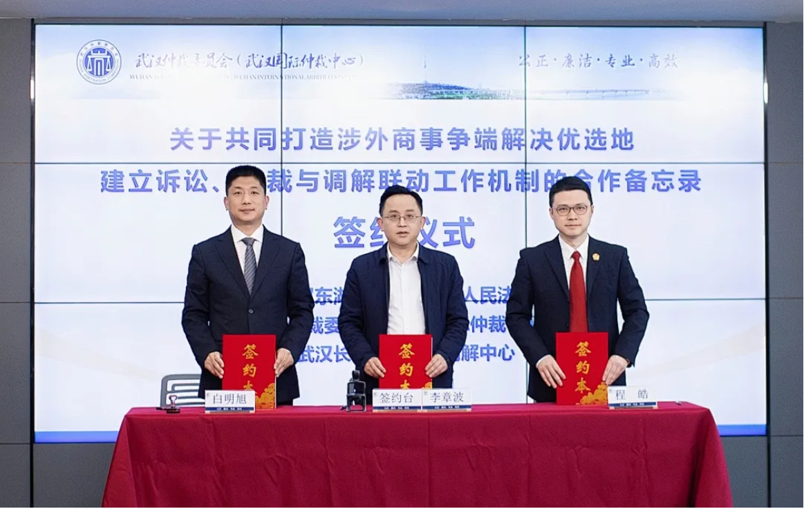 武汉仲裁委办党组书记、主任李章波在签约仪式上表示:“此次三方合作,绝非简单的‘职能叠加’,而是基于各自优势的‘效能倍增’。三者联动形成的‘分流引导—调解化解—司法/仲裁确认—执行保障’闭环机制,既能为中外当事人提供‘一站式’争端解决选择,更能让武汉的涉外商事争端解决服务形成‘组合优势’,助力武汉逐步成为具有国际影响力的‘争端解决优选地’。”
