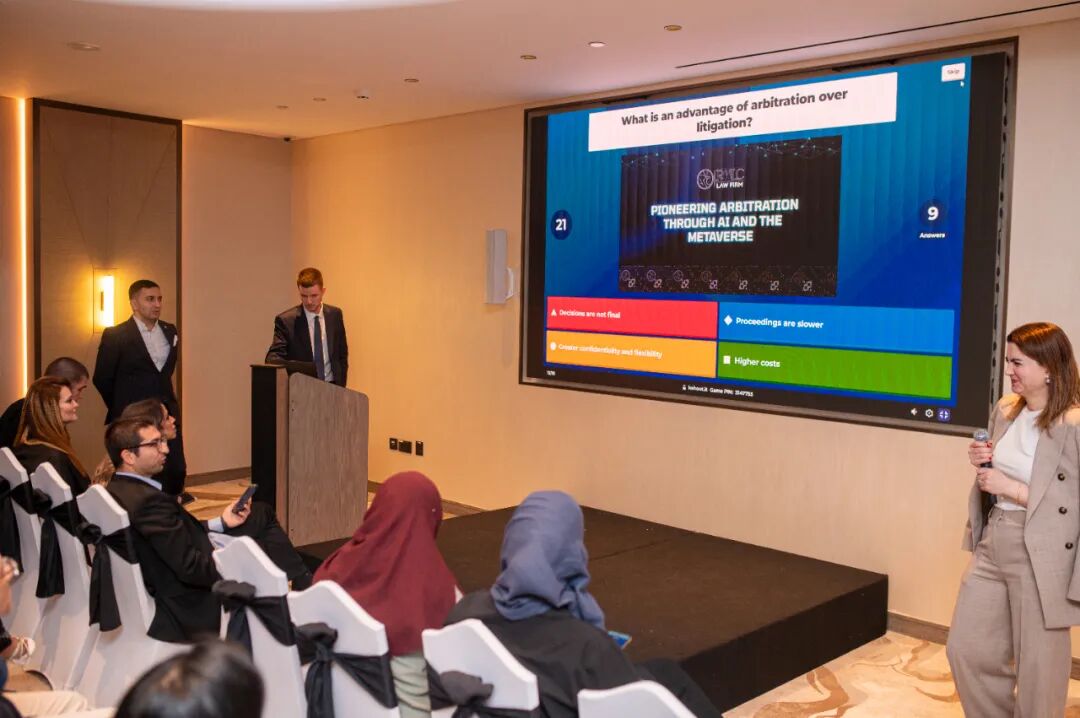 由企业顾问 Aliaksandr Yermalayeu与高级企业顾问 Zaur Kurbanov主持的第三站,以趣味竞赛的形式结束当晚活动。来宾通过定制问答挑战仲裁原则、伦理情景、程序规则与技术发展等主题。